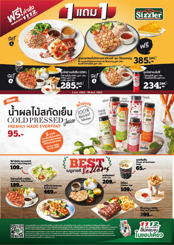 Sizzler Thailand : Menu 2018